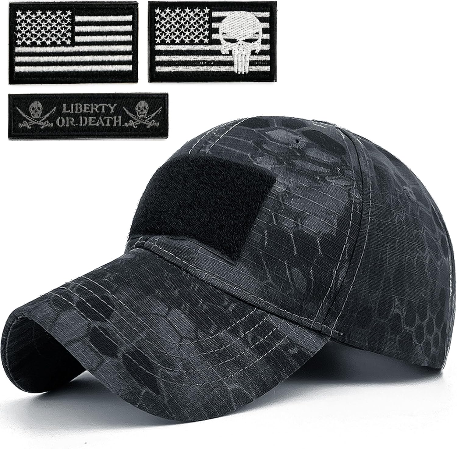 Tactical Military Mens Camo Baseball Hat with American Flag Skull Patch Patriotic Operator Camouflage Cap for Women