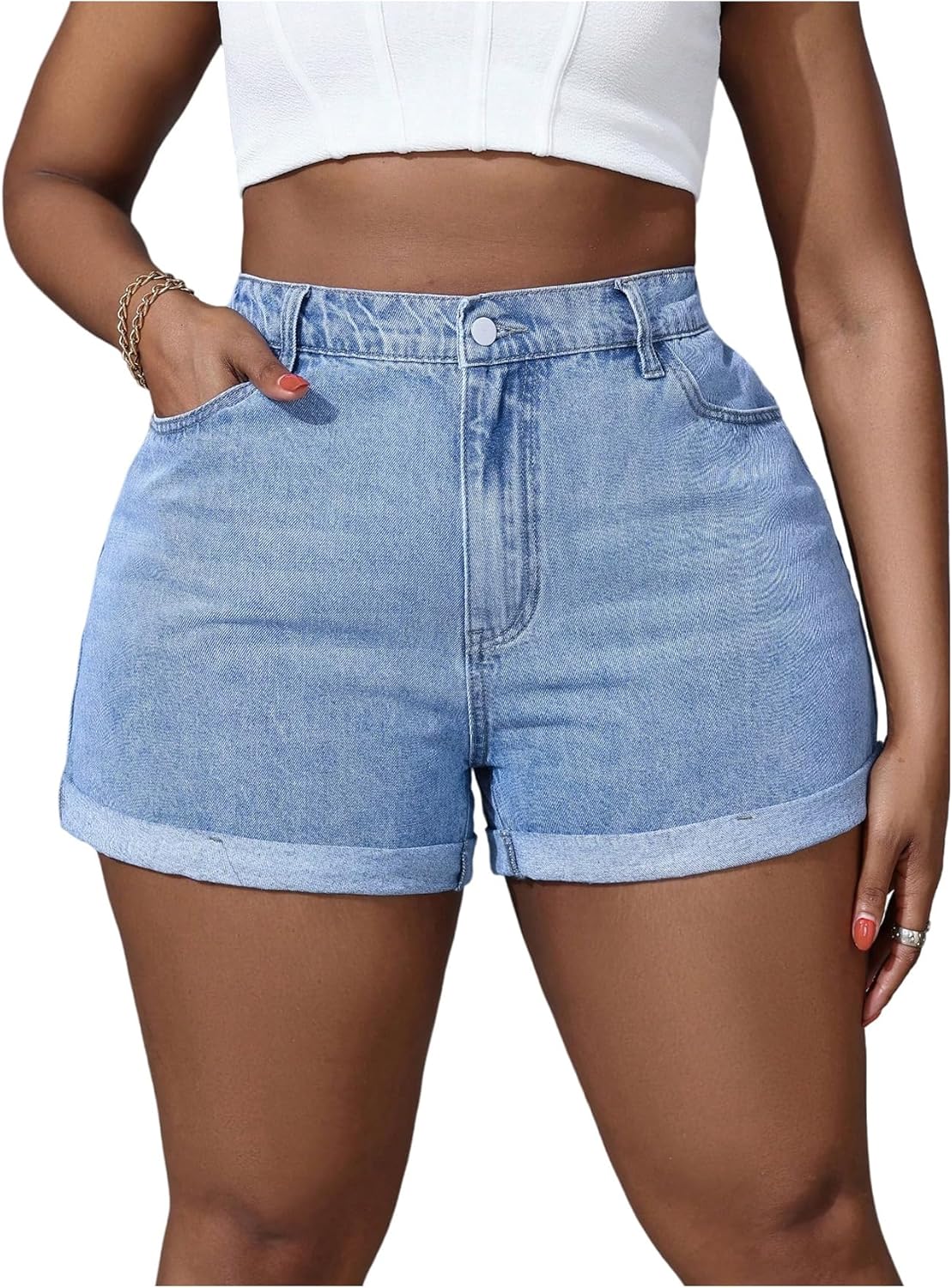 WDIRARA Women's Plus Size Denim Shorts High Waisted Roll Up Hem Jean Shorts