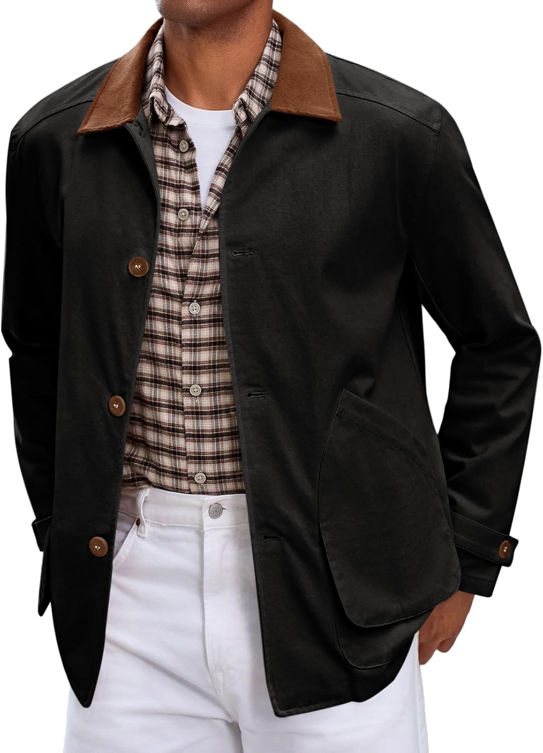 Runcati Mens Lightweight Jackets Button Down Casual Cotton Barn Jacket Vintage Military Fall Outwear with Pockets