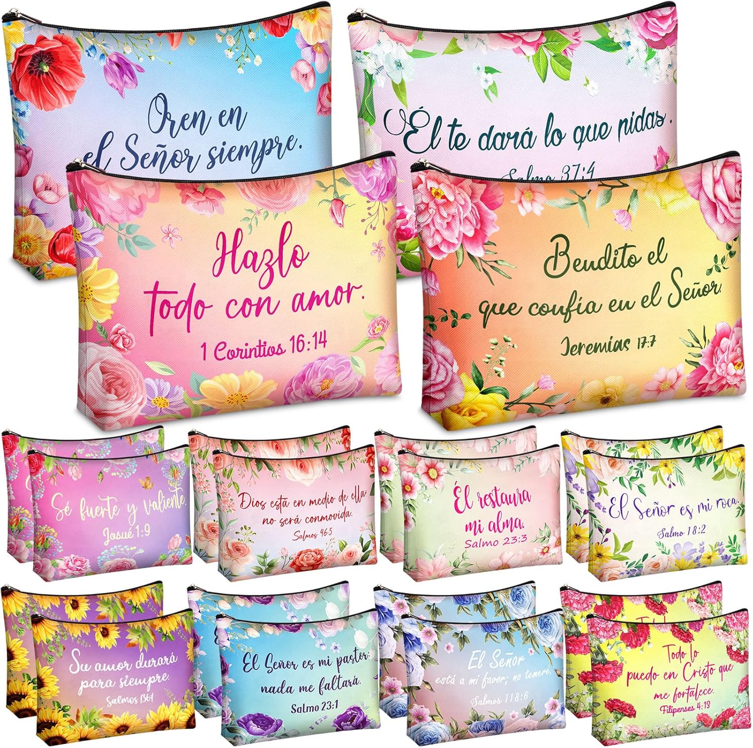 Kacctyen Spanish Christian Cosmetic Bags Bulk Mother's Day Church Gifts Spanish Christian Gifts for Women Bible Verse Pencil Pouch Makeup Bag Regalos Religiosos Para Mujer(24 Pcs,Classic Style)