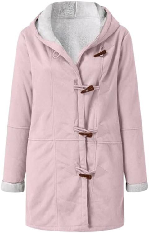 Women Fleece Horn Button Hoodie Jackets Casual Winter Fall Long Sleeve Warm Jacket Coat with Pockets