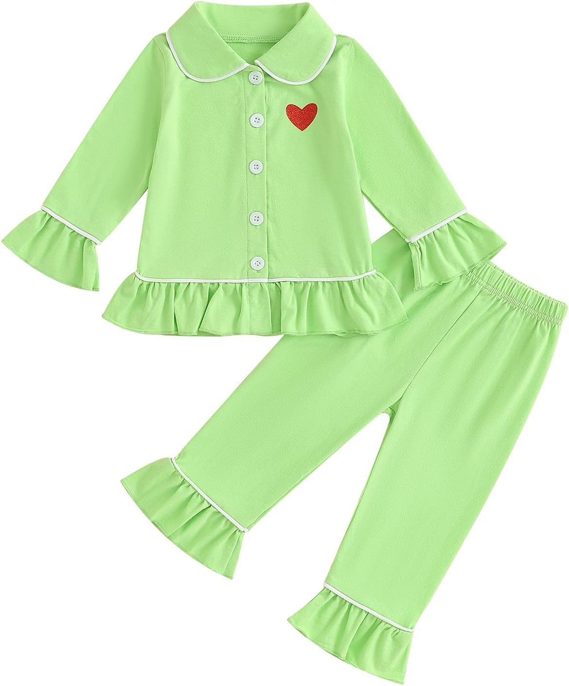Multitrust Baby Girls Ruffled Cotton Pajamas Set Long Sleeve Button Down Shirts and Flared Pants Matching Pj Sets Sleepwear