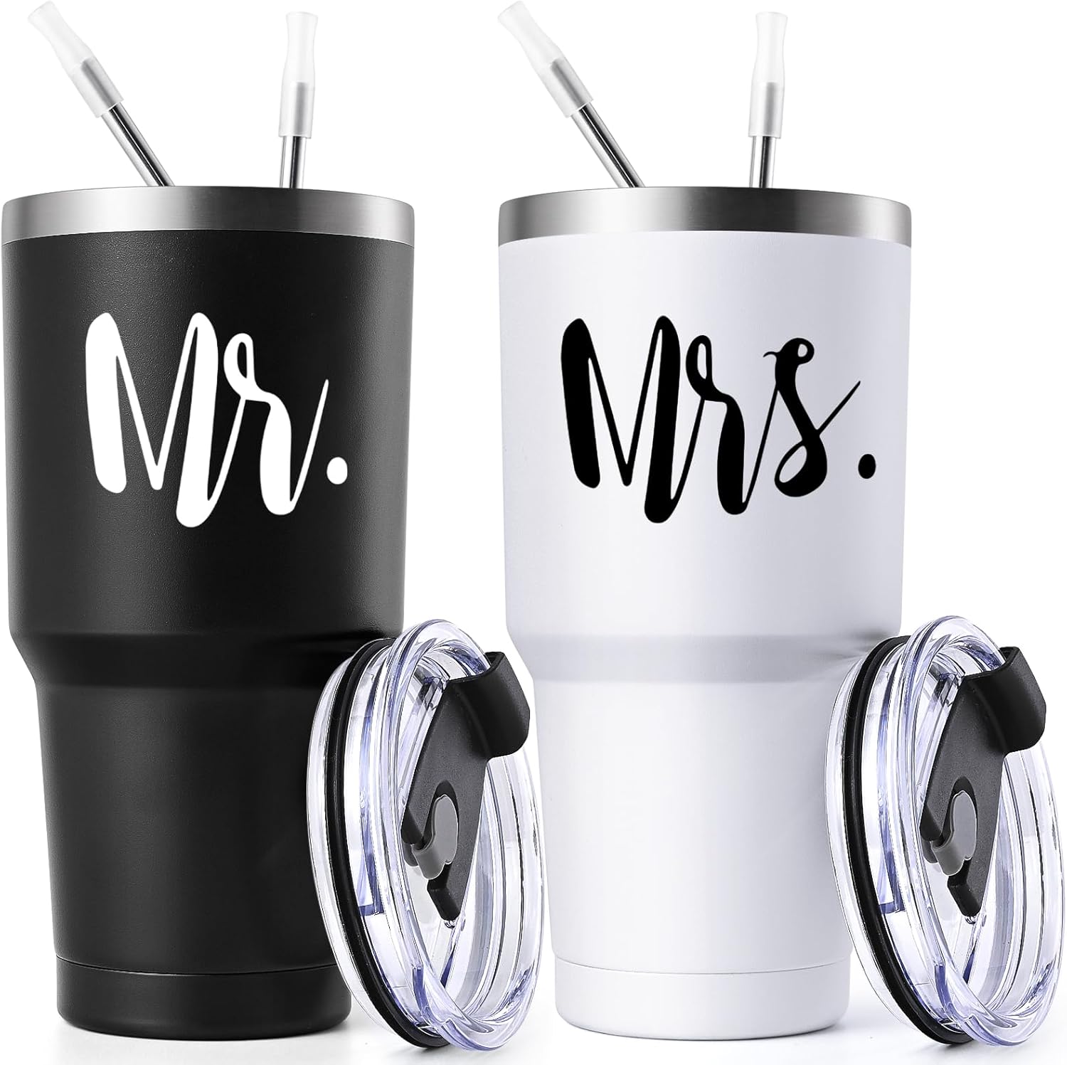 Lifecapido Mr & Mrs Stainless Steel Travel Tumblers Set, Wedding Gifts for Couples - His & Her Gifts, 30oz, Black & White