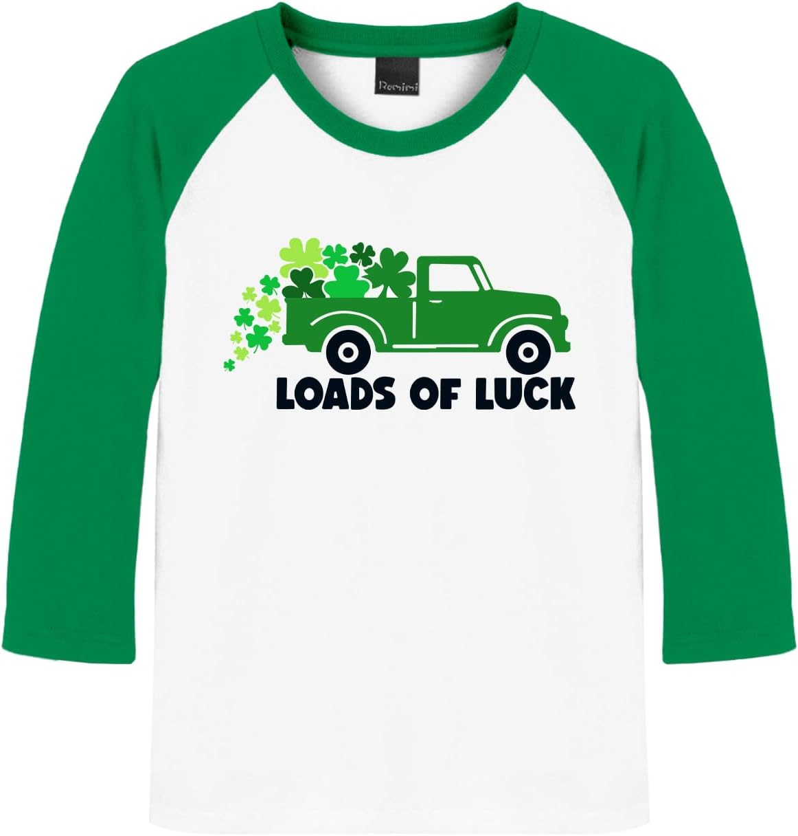 Remimi Unisex Kids St Patricks Day Shirt Irish Lucky Shamrock 3/4 Raglan Sleeve Tops 3-14 Years