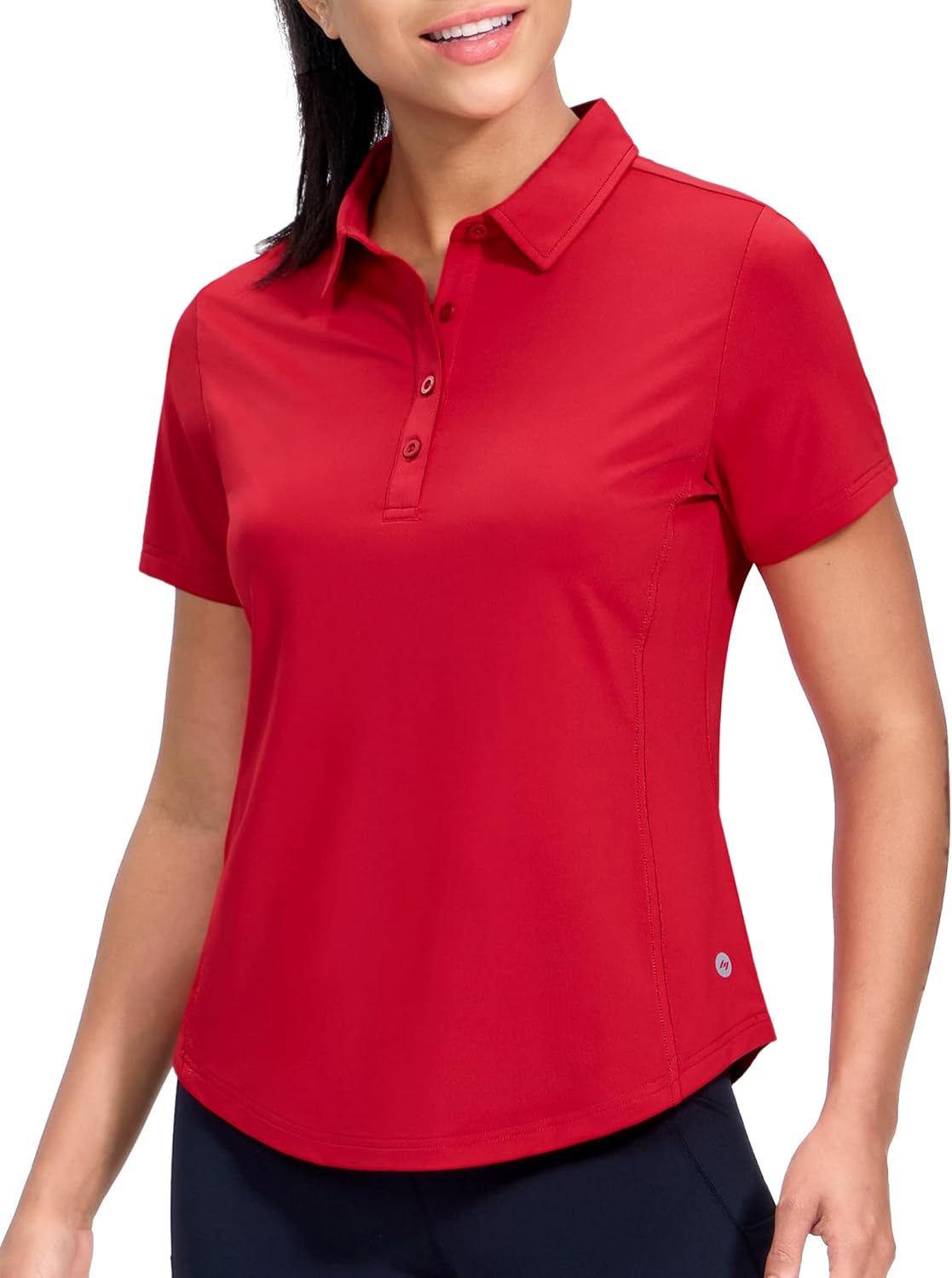 MIER Womens Golf Polo Shirts Short Sleeve Quick Dry Sun Protection Active UV Shirts Collared Tennis Tops, 4 Buttons