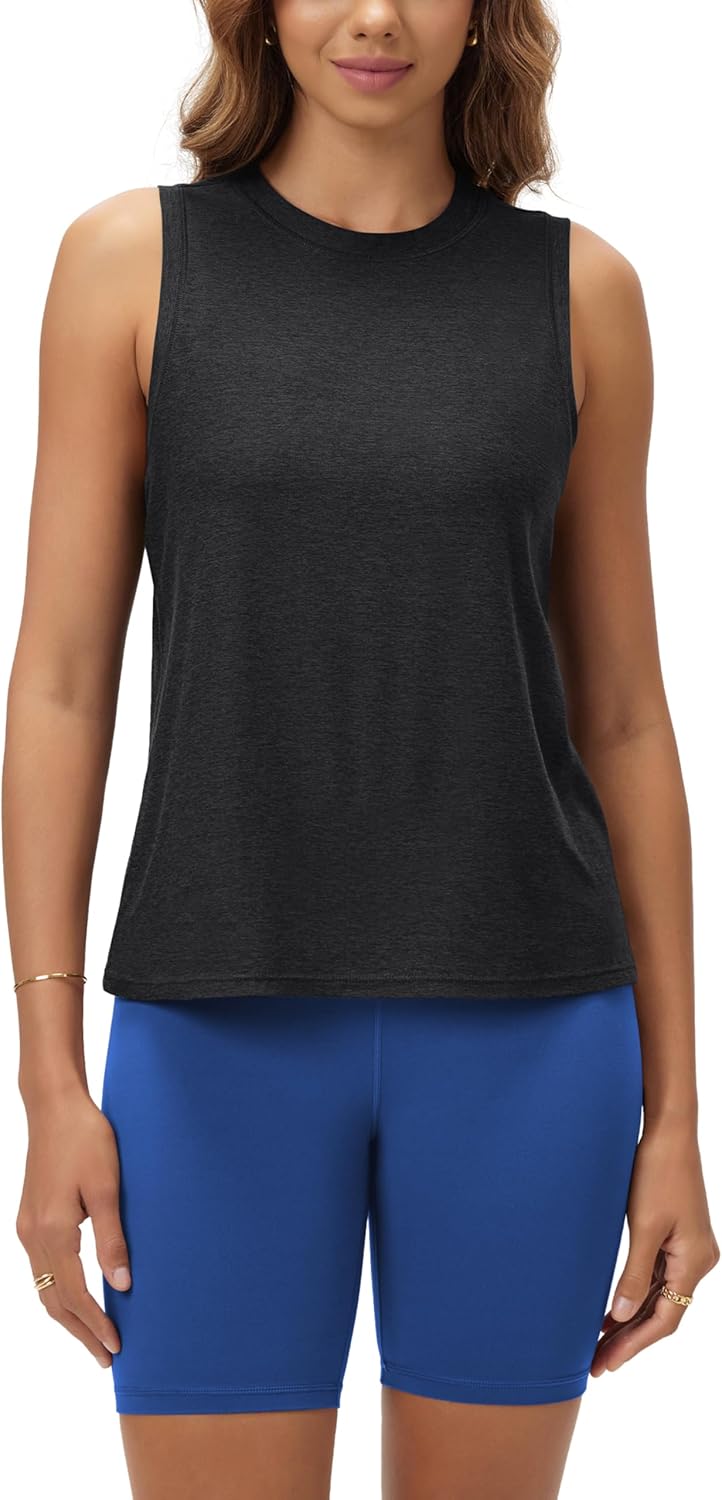 ODODOS Women's Performance Tank Ultra Soft odSTRATUM Tech Sleeveless Tee Shirts High Crew Neck Pullover Top