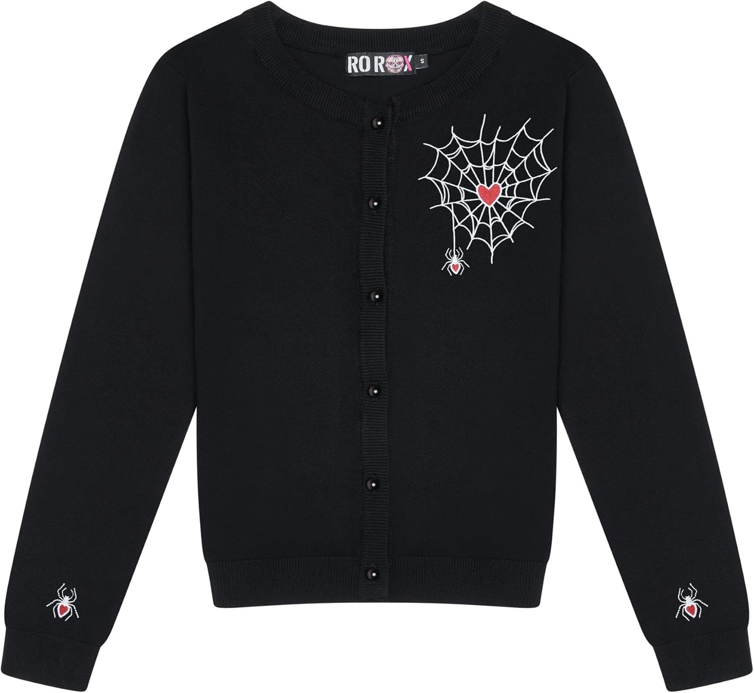 Ro Rox Loveweb Cardigan - Goth Embroidery Spider Web Heart, Long Sleeve Top
