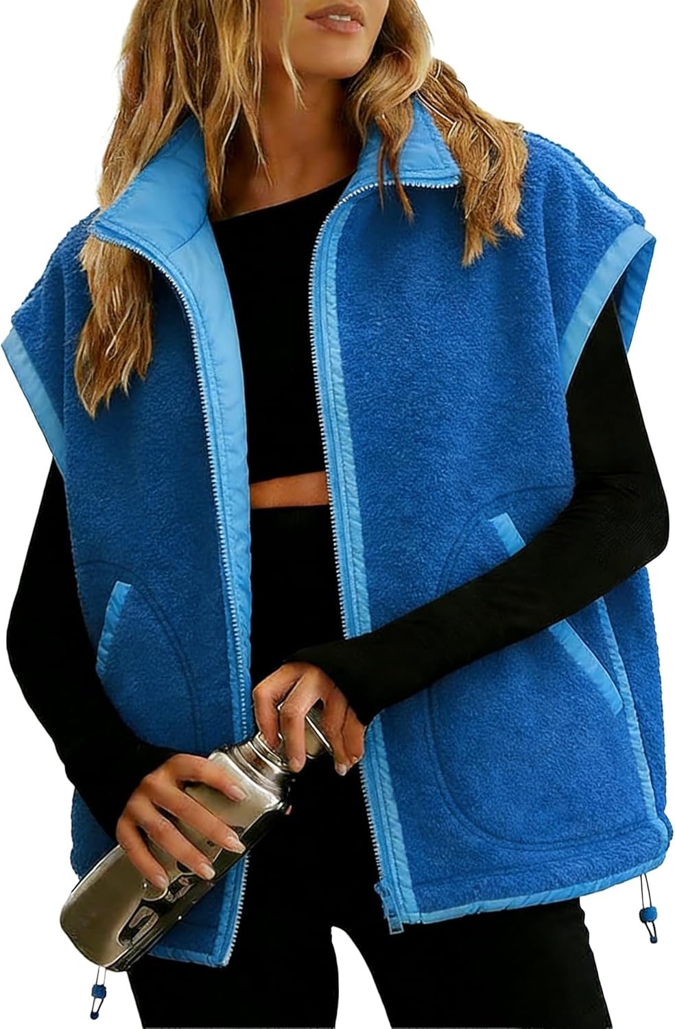 Women's Sherpa Fleece Vest Sleeveless Stand Collar Zip Up Jacket with Pockets Casual Daily Wear Fall Winter Outerwear
