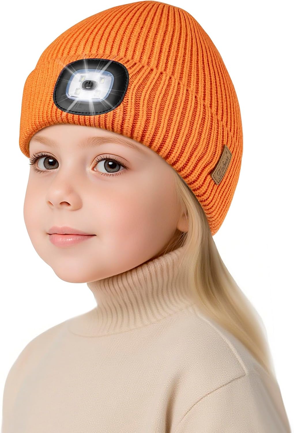 Etsfmoa Hat with Light for Kids,Fleece Lined Knit Beanie for Boys and Girls,Type-c Rechargeable Headlamp LED Cap