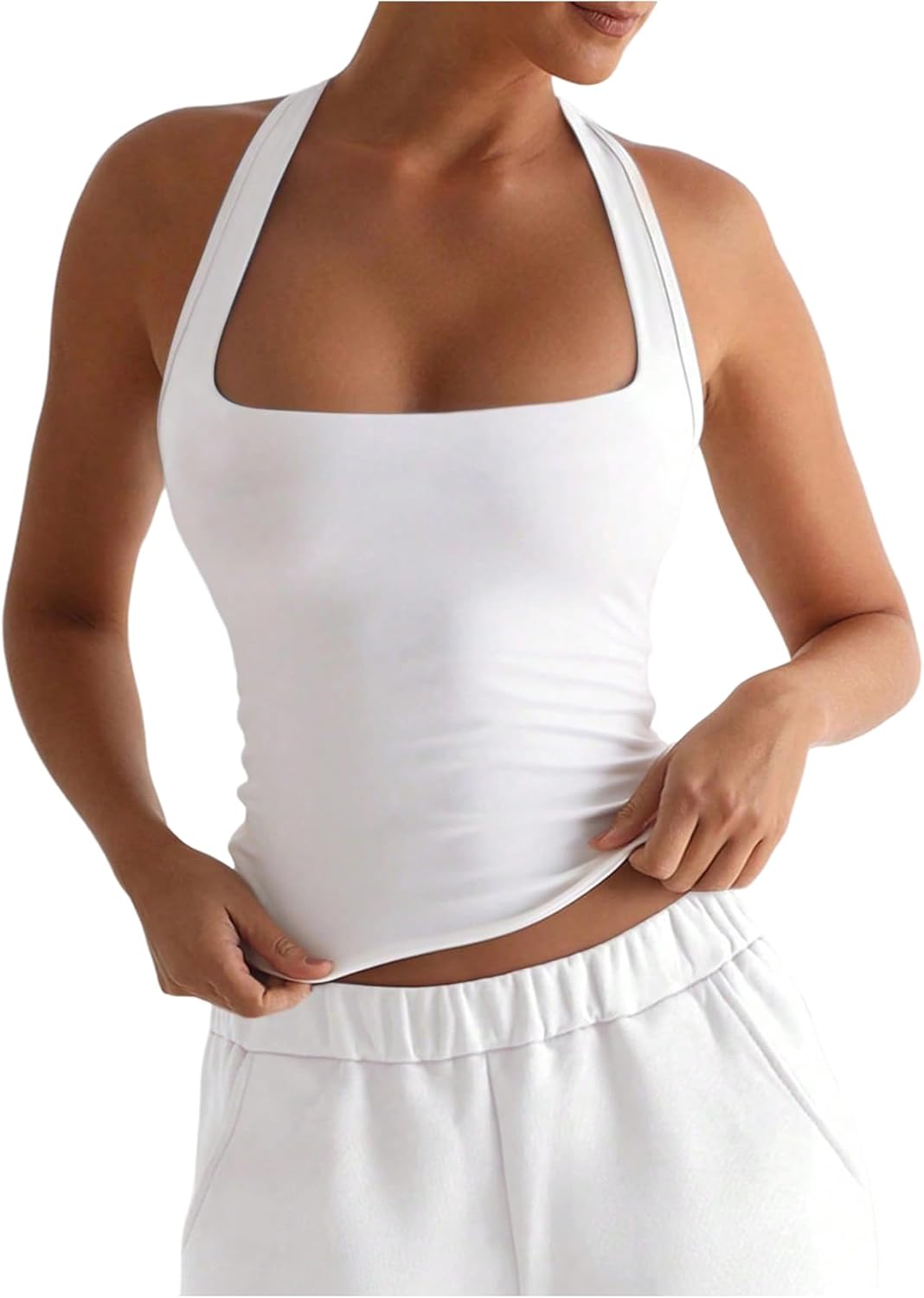 SOLY HUX Women's Square Neck Halter Top Sleeveless Backless Tight Basic Tank Shirts