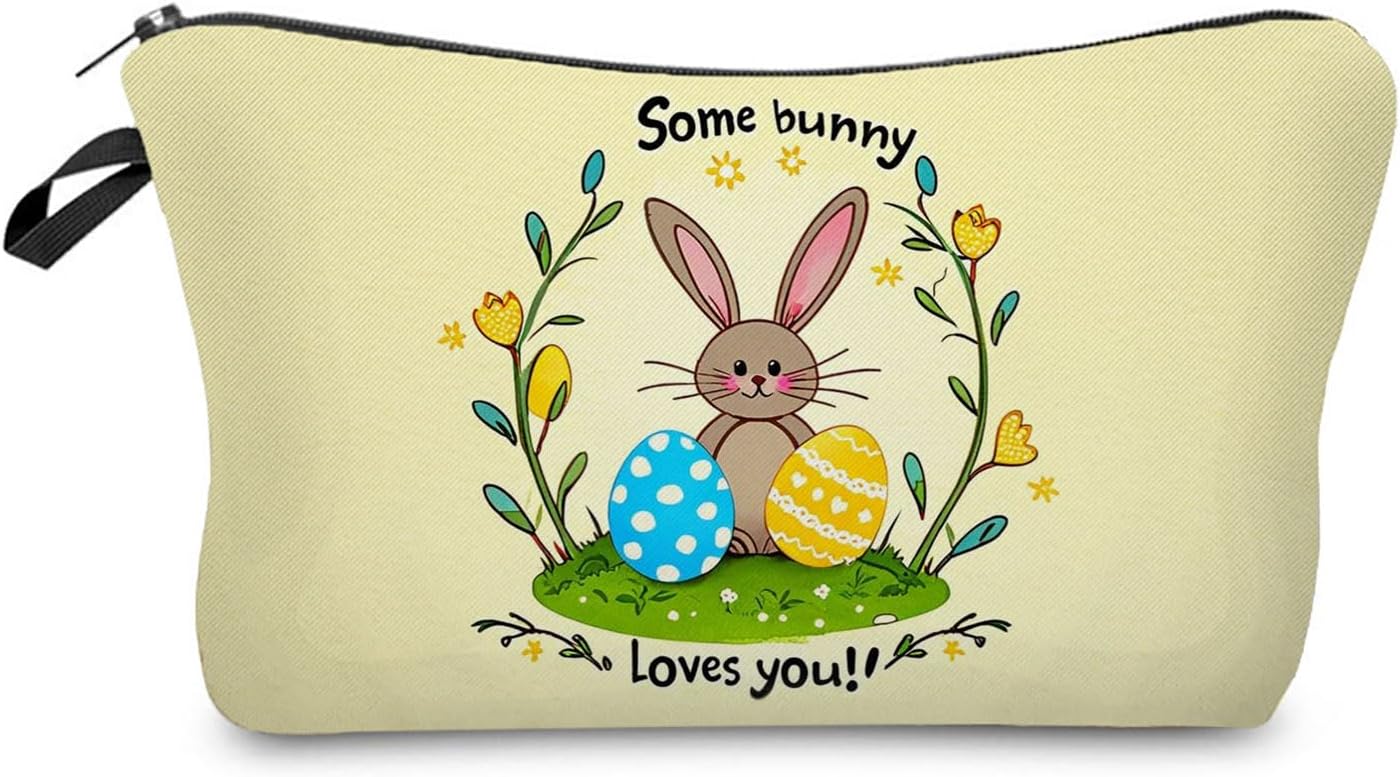 Easter Bunny Makeup Bag Cute Small Organizer Zipper Pouch Some Bunny Loves you Cosmetic Bag Easter Birthday Present for Women Friends