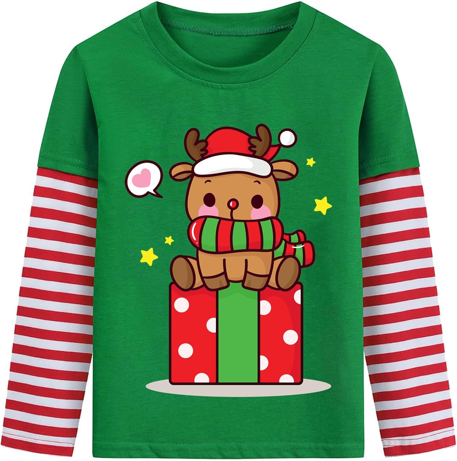 Kids Ugly Christmas Shirt Boys Girls Reindeer T-Shirts Stripe Long Sleeve Santa Claus Tees Tops Xmas Clothes 2-7 Years
