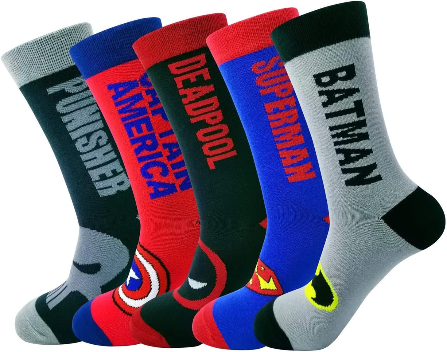 Mens Funny Dress Socks,5-Pack Crazy Cartoon Character Patterned Crew Sock,Fun Novelty Gift for Adult Teen(5 pack)