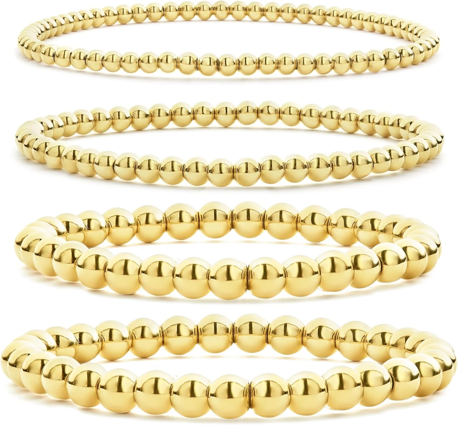 CONRAN KREMIX Waterproof Gold Beaded Bracelet For Women Non Tarnish,Stainless Steel Gold Ball Bead Stretch Layered Bracelet Stack