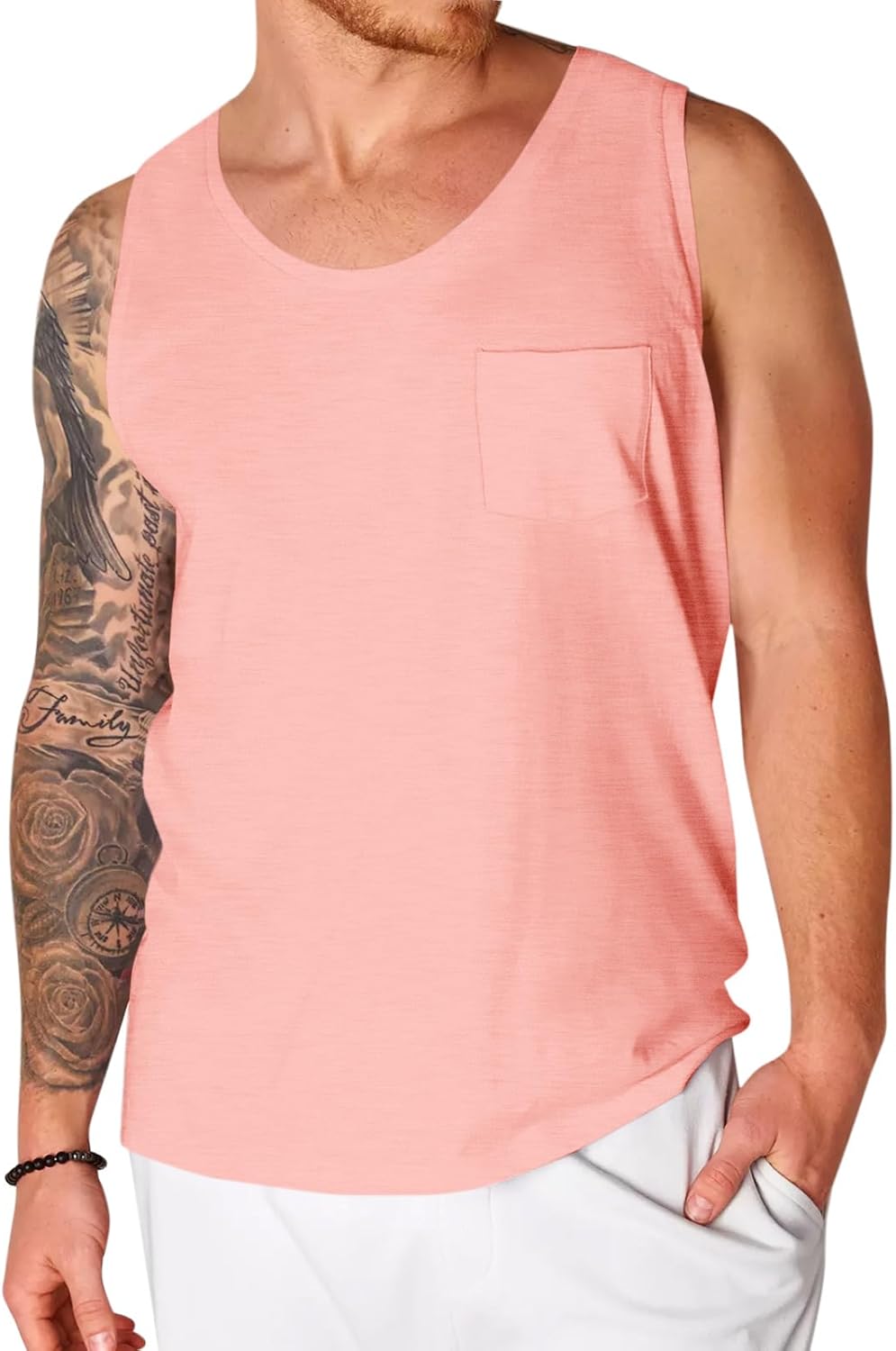 Runcati Men's Sleeveless Tank Tops Crewneck Workout Gym Cotton Muscle Pocket T Shirt