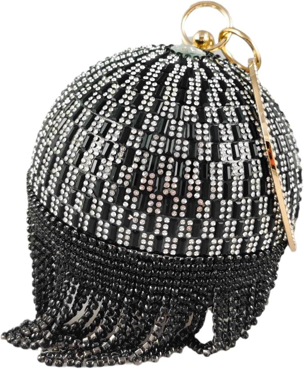 Boutique De FGG Round Ball Crystal Clutch Purse Women Formal Evening Bags Wedding Party Tassel Rhinestone Clutch Bags,Mini