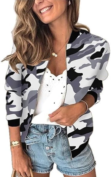 HipGlamp Women's Floral Print Bomber Jacket Casual Vintage Zip Coat Lightweight Long Sleeve Outwear Tops Windbreaker