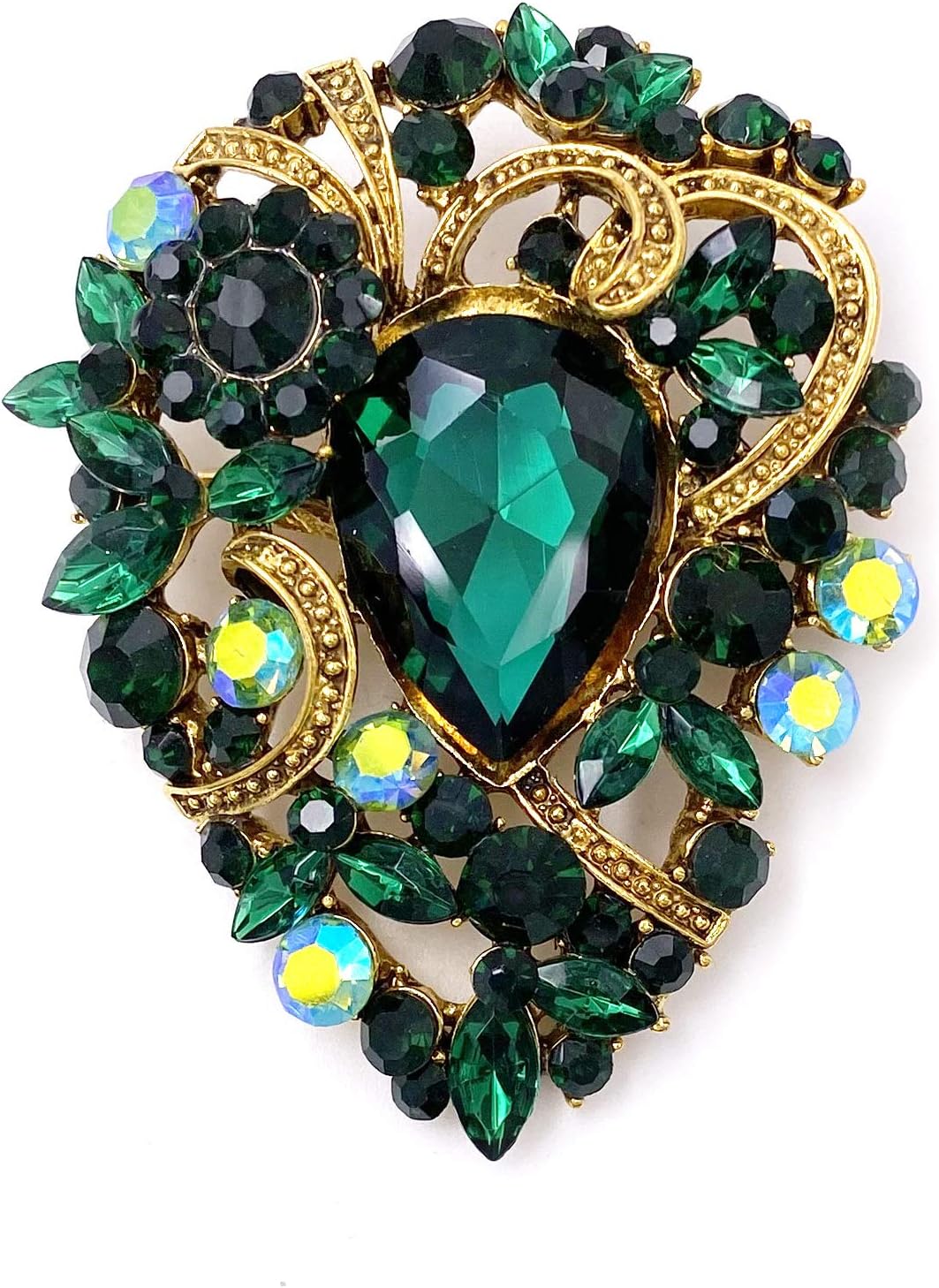 LAXPICOL Women's Vintage Austrian Crystal Elegant Flower Teardrop Brooch Gold Tone