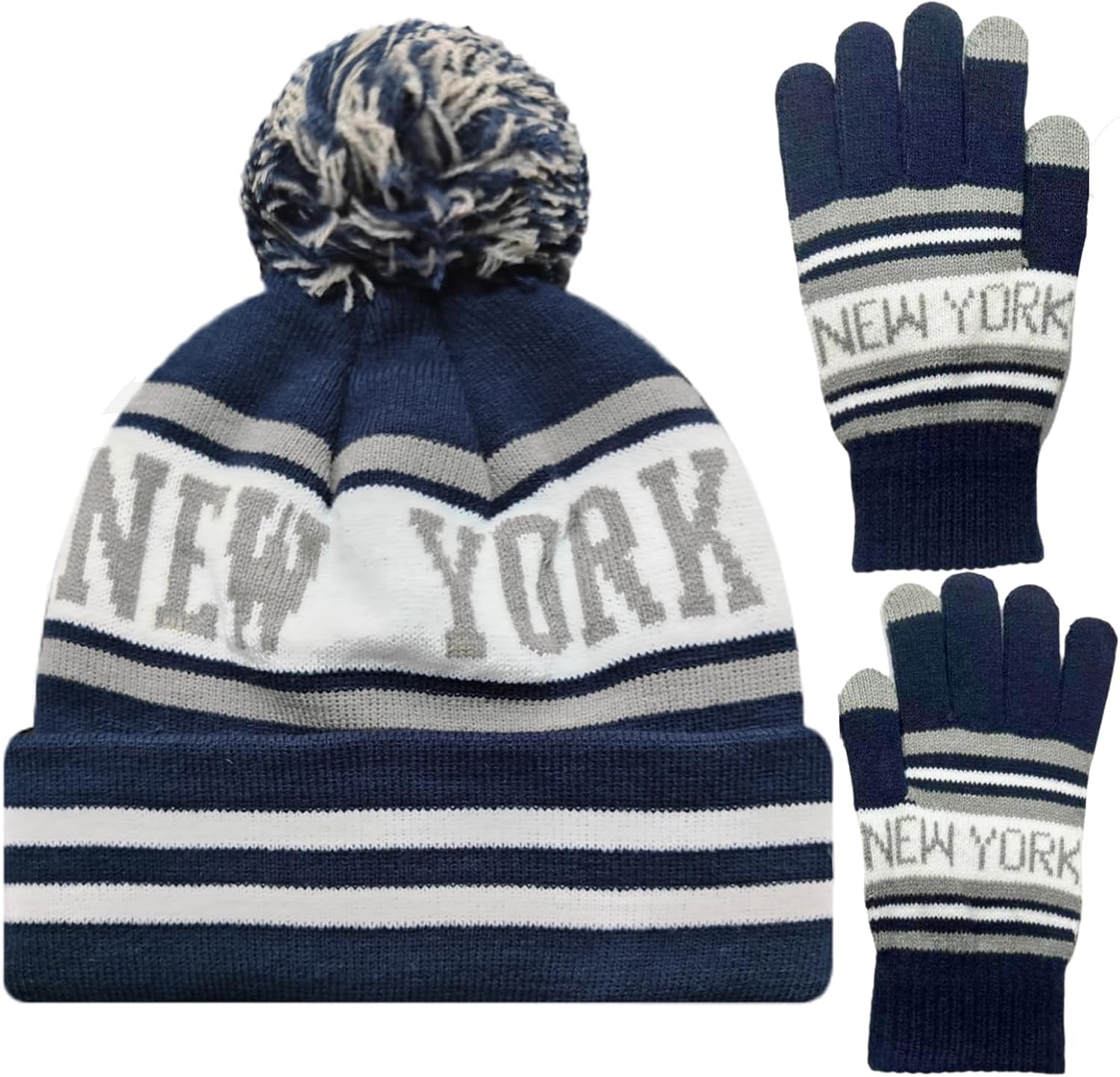 Vintage Classic Skull Cap Beanie Hat Cuffed Winter Hat Knit Comes with Warm Gloves Gifts for Unisex Fans
