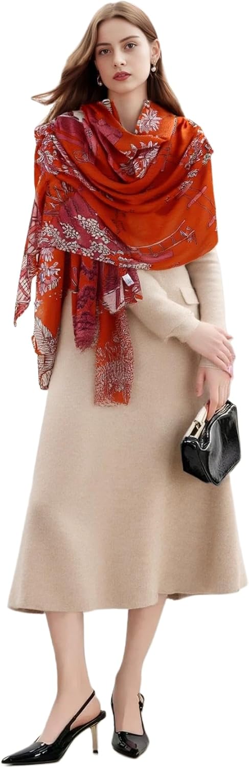 Luxury Cashmere Pashmina Style Shawl - Silk & Wool Blend Scarf, Lightweight Skin-Friendly Wrap
