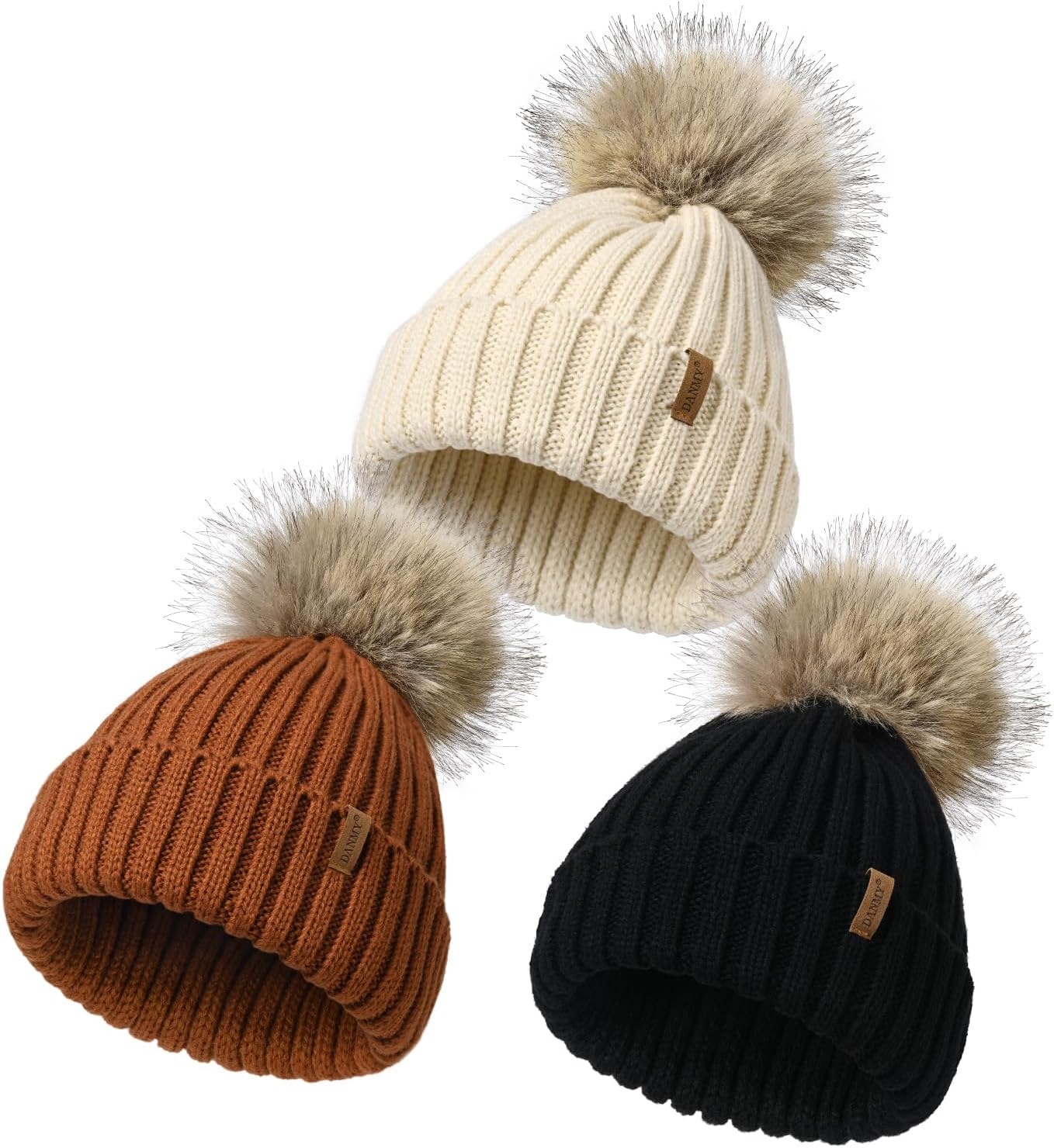 Kids Winter Hat Toddler Stretchy Knitted Beanie with Faux Fur Pom Poms Beanie for Baby Girls Boys