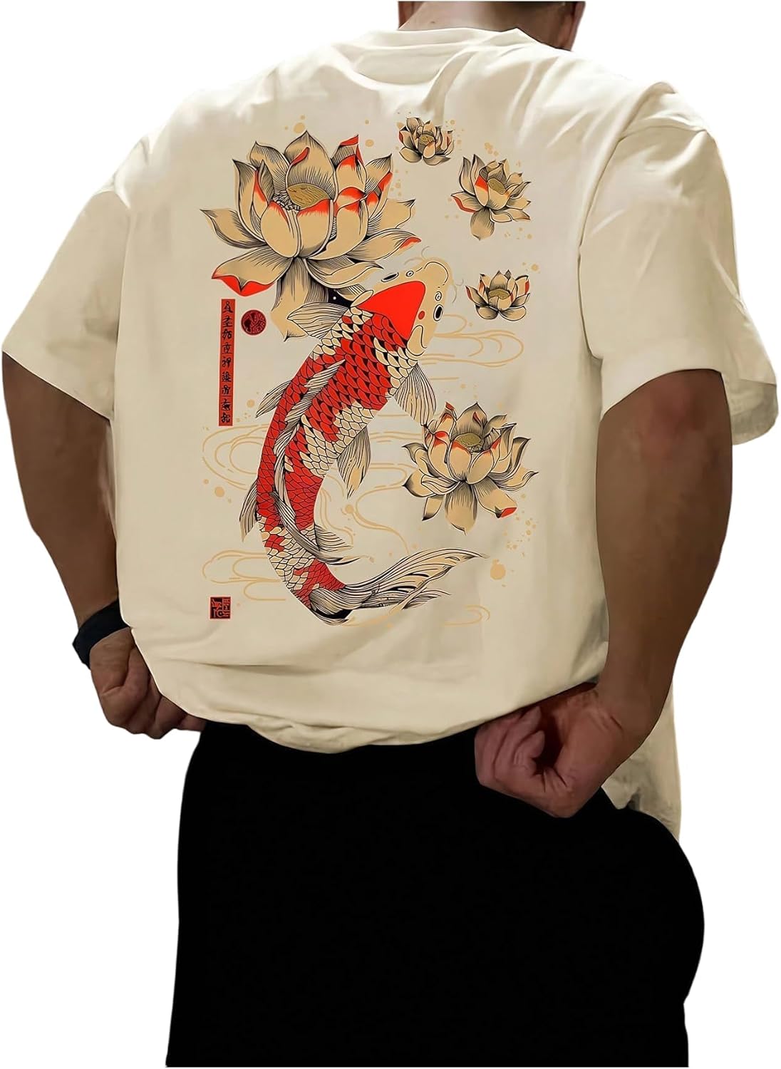 QJQ Men's Letter Graphic Tees Short Sleeve Crewneck T Shirts Trendy Streetear Tops Vintage Japanese Koi Shirts