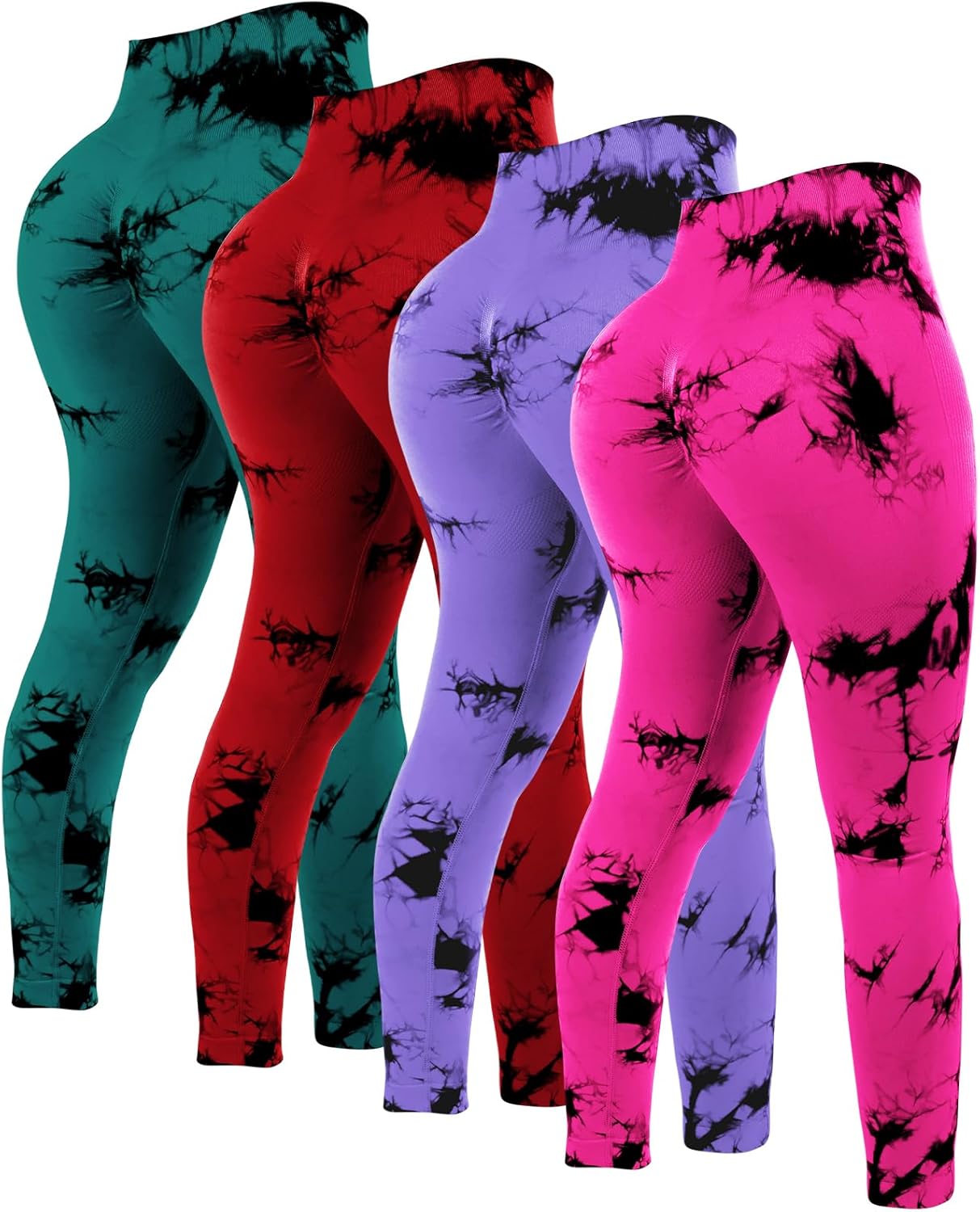 4 Pcs Womens Workout Leggings Tie Dye High Waisted Yoga Pants Seamless Scrunch Butt Lifting Compression Tights