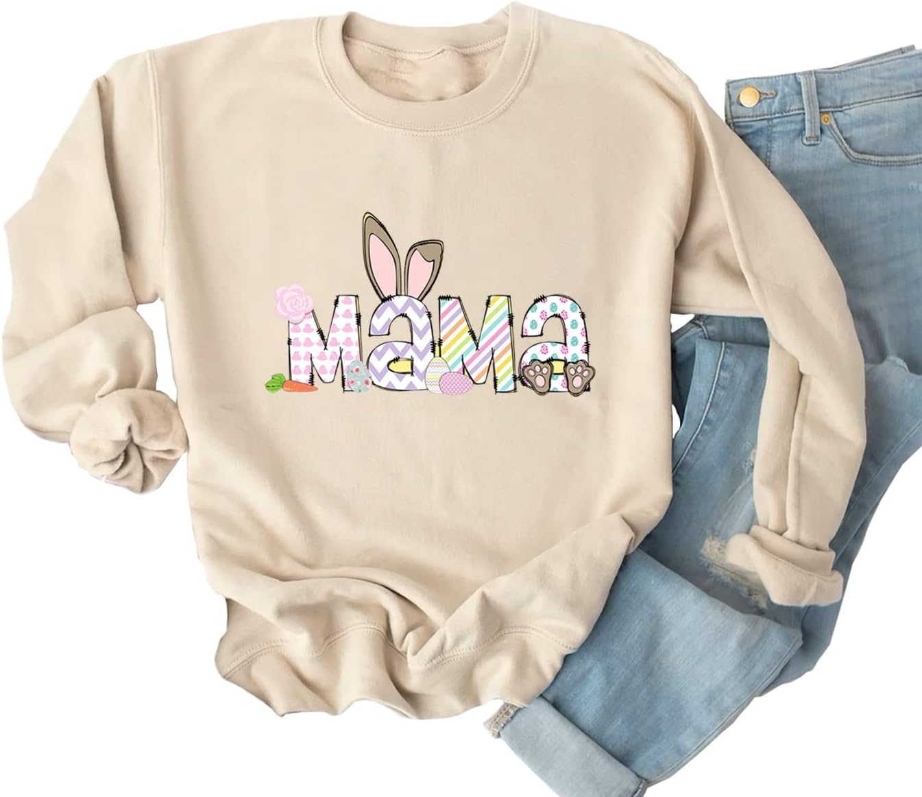 Ykomow Happy Easter Sweatshirt Women Long Sleeve Cute Bunny Rabbit Graphic Tees Pullover