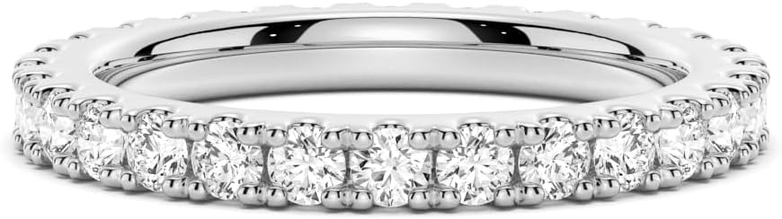 MSBLUE® 2.2mm Moissanite Eternity Band, 14K White Gold Vermeil Wedding Band Ring for Women, Rhodium Finish, Valentines Day Gifts for Her