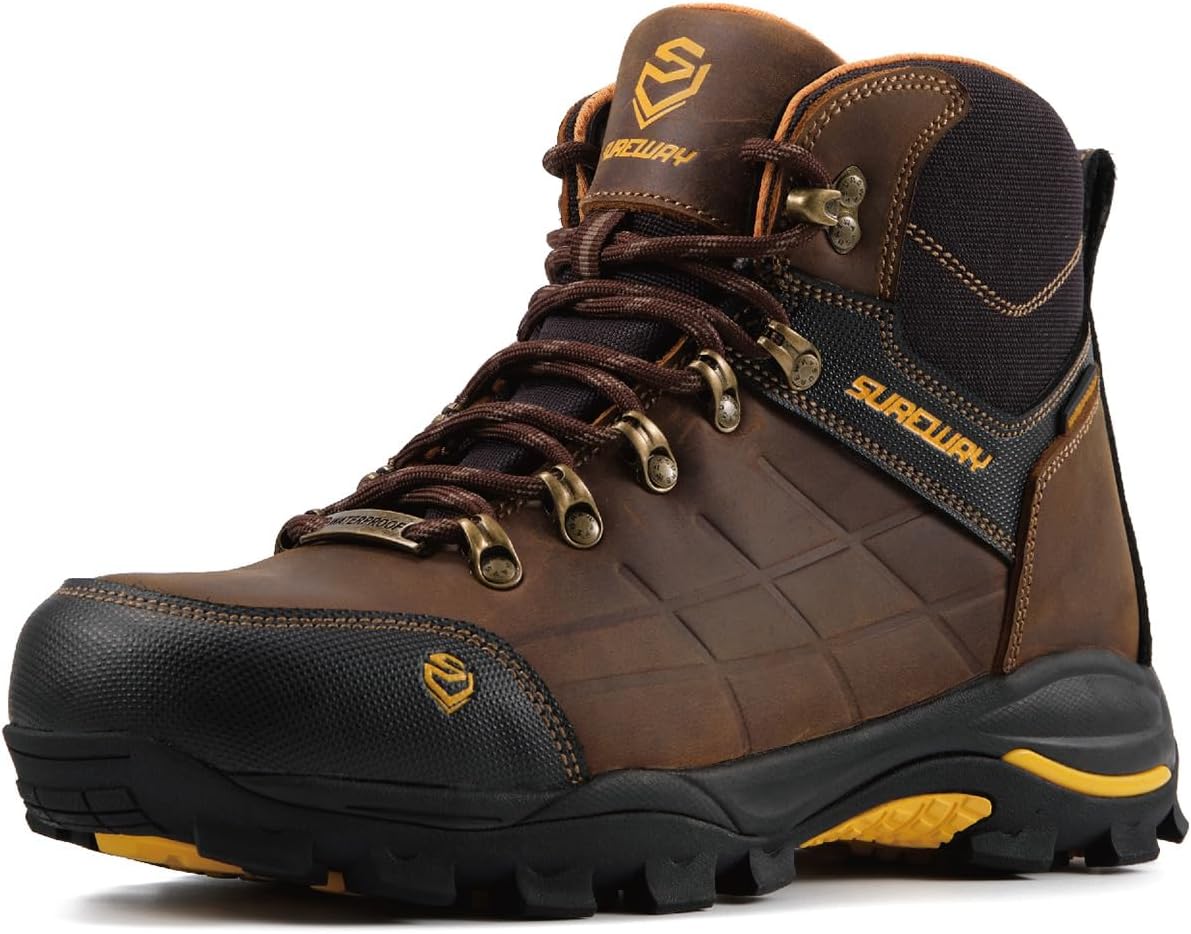 SUREWAY Men's Waterproof Steel/Soft Toe 6" Work Boot, Slip Resistant Leather Ankle Safety Boot for Construction,Roofing & Hunting,Comfort & Durability