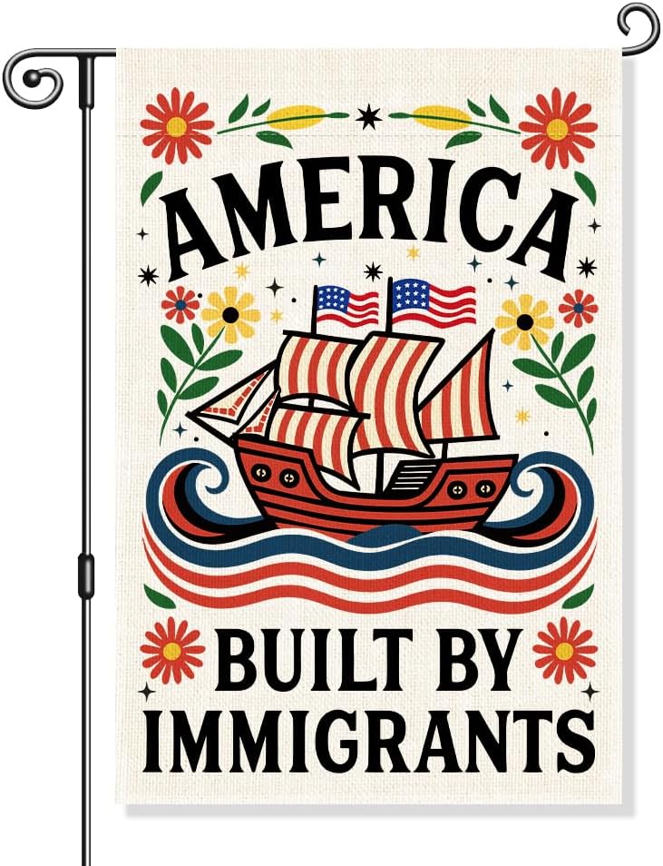 America Was Built By Immigrants Garden Flag, Funny Floral Yard Flags for Outside, Pro Immigrant Resist Racism Flag, Anti Racist Patriotic Social Justice Equality Inclusive Diversity Yard Sign