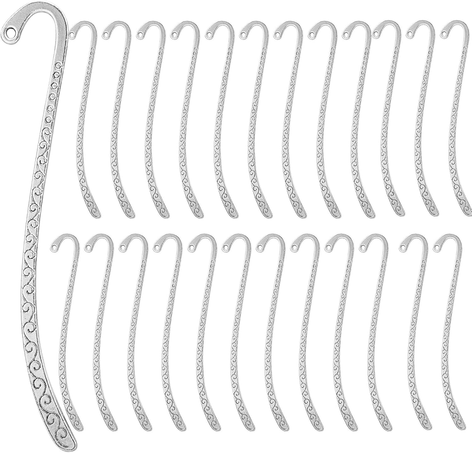 25 Pack Metal Bookmark Hairpin Hook Antique Vintage Bookmark Silver Carved Hook Bookmarks with Loop for Crafting, Book Lovers Unique Gift(Silver)