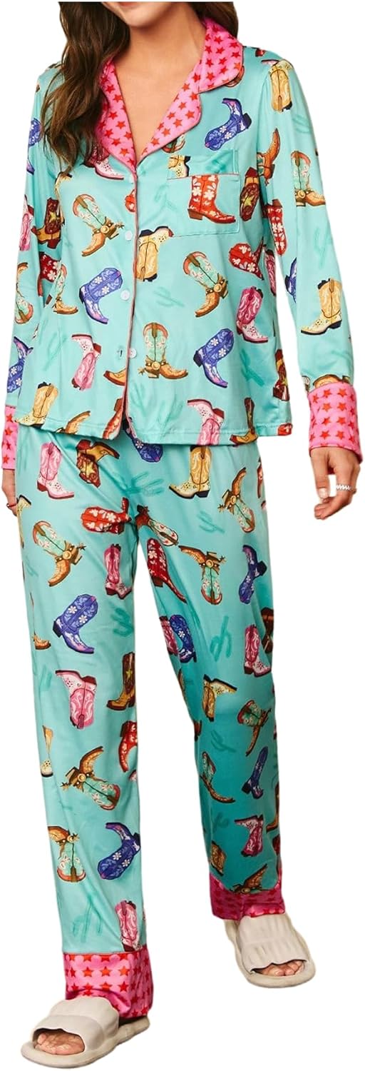 SHENHE Women's Western Cowgirl Boots Star Print Long Sleeve and Pants 2 Piece Pajama Set