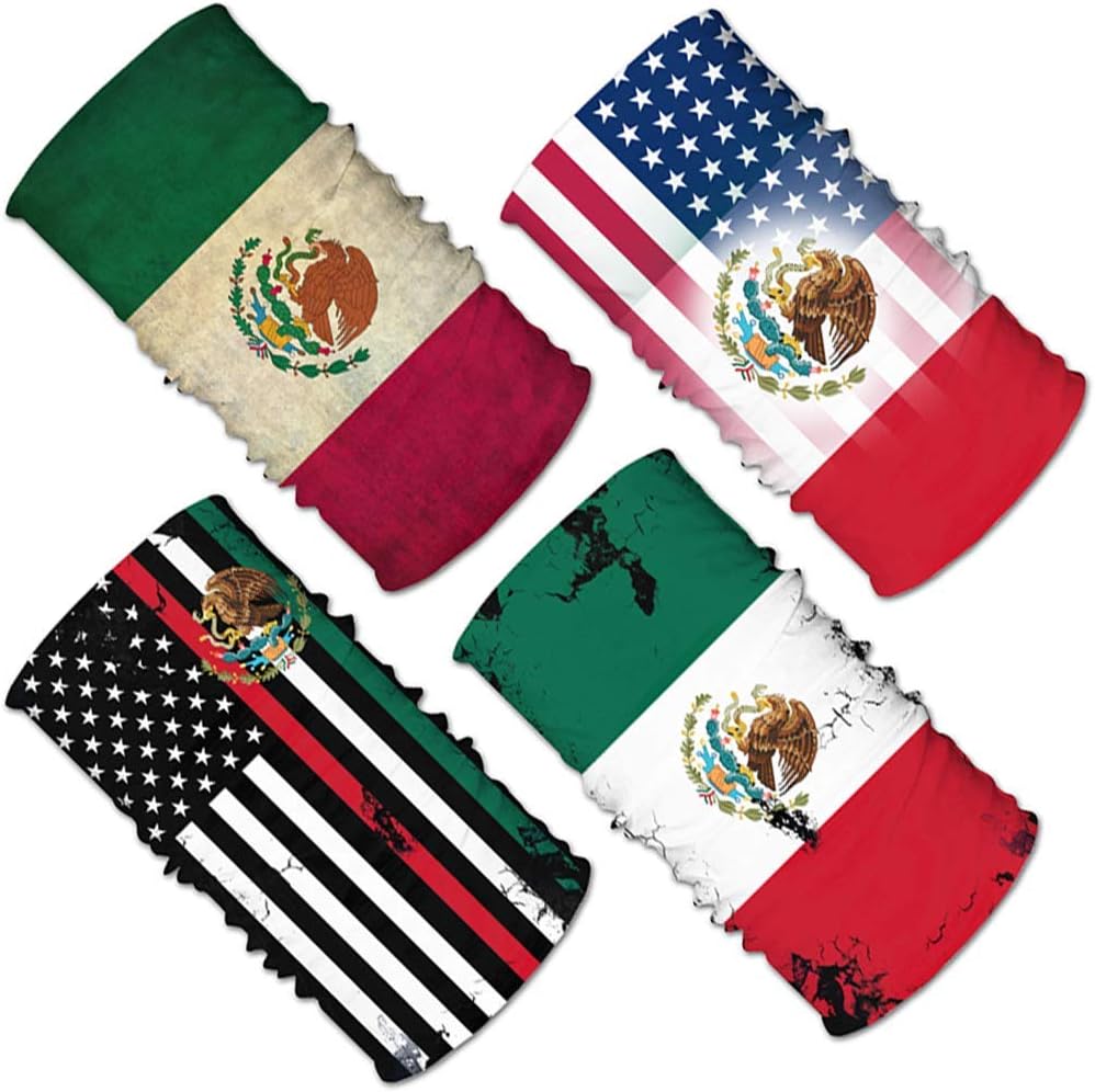 Ninvstg 4pcs Mexico Flag Face Scarf Magic Tube Bandana Headwear Neck Gaiter Tube Scarf Headbands Balaclava