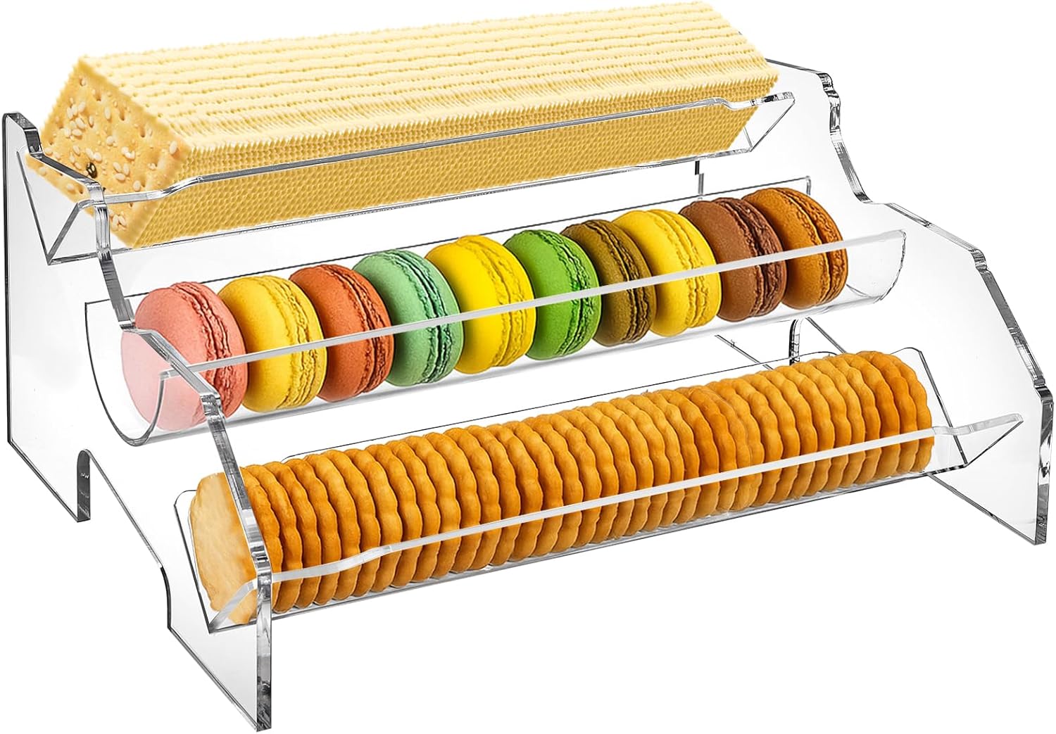 Yopay 3 Tier Acrylic Cracker Trays for Serving, Clear Macaron Display Tray, 11 Inch Biscuit Cracker Holder Stand for Wedding Home Party Events