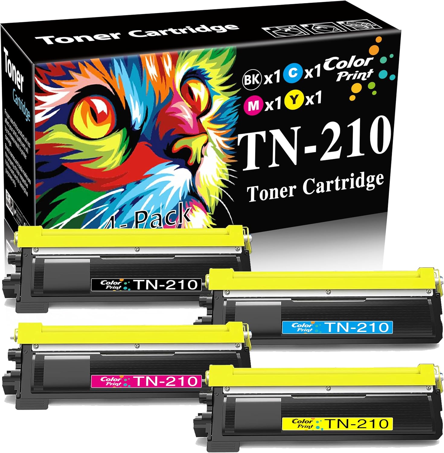 - Package Contents: 4-Pack TN210 TN-210 Toner Cartridge (TN210 Black, TN210 Cyan, TN210 Magenta, TN210 Yellow)