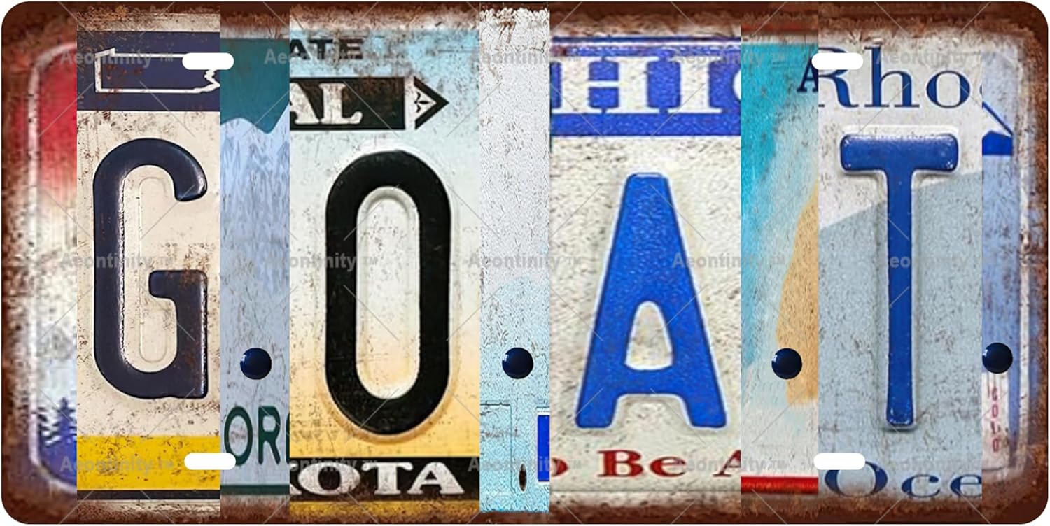 G.O.A.T. GOAT Metal Tin Sign License Plate Bar Cafe Garage Cave Home Room Wall Bathroom Farmhouse Garden Porch Patio Decor, 12 x 6 Inch