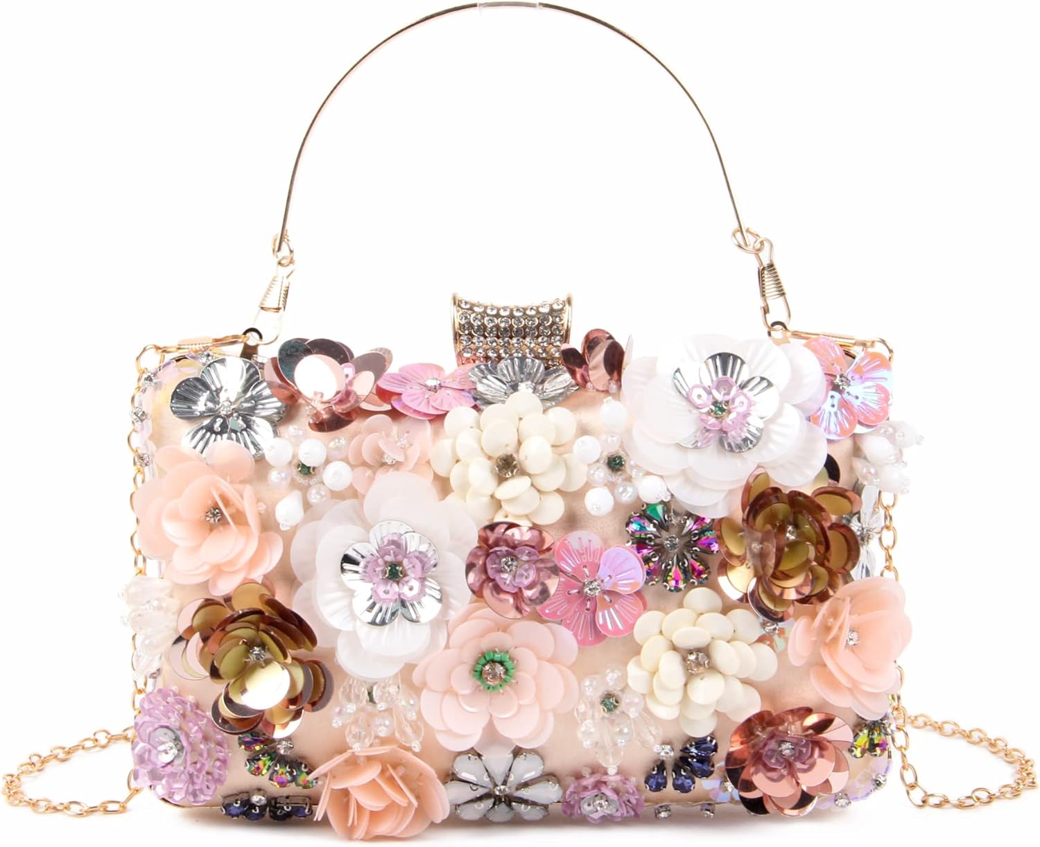 Fecialy Women's Floral Evening Handbags Colorful Rhinestone Clutch Purses Floral Bride Wedding Handbag Chain Shoulder Bag