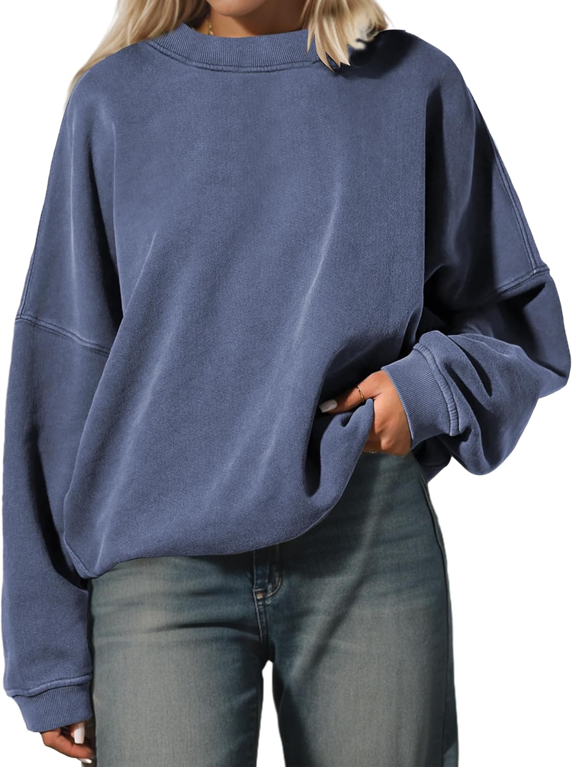 Women’s Oversized Sweatshirt Crewneck Pullover Top Casual Drop Shoulder Crew Neck Plain Shirt 2025 Fall Clothes
