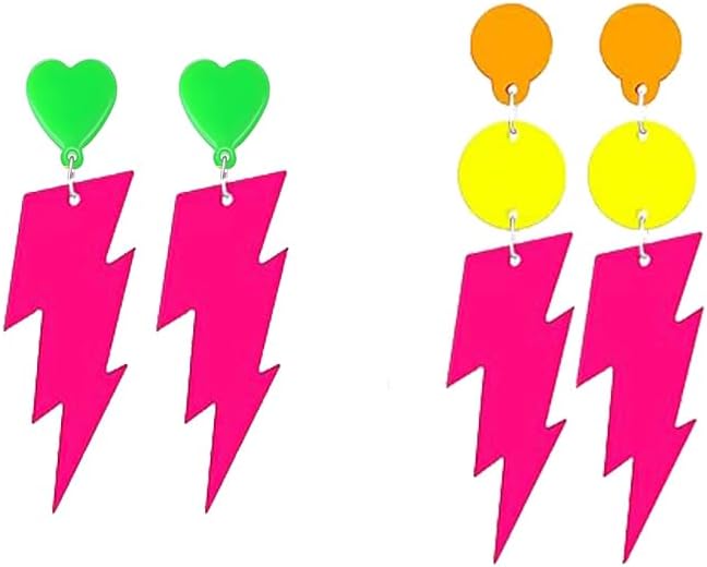 80s Neon Earrings Hollow Lightning Bolt Halloween Punk Retro Earrings for Women 80's Party Accessories