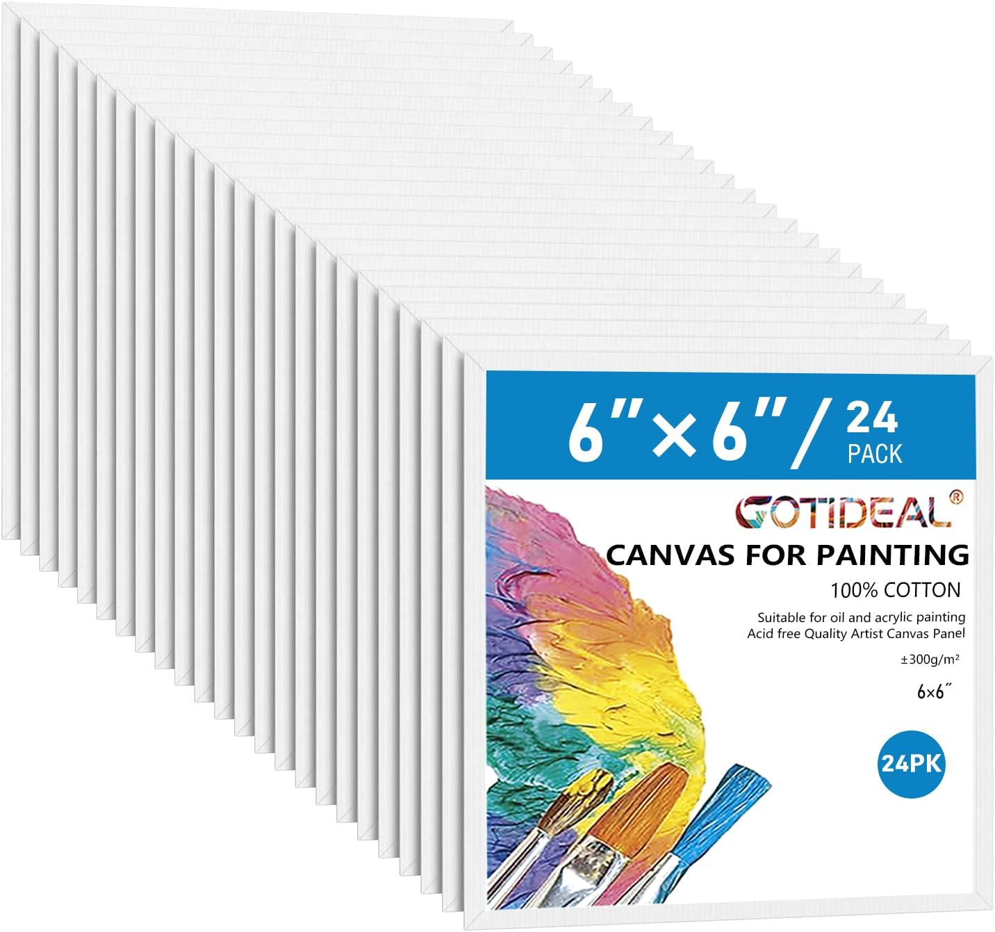 GOTIDEAL Canvases for Painting, 6x6 inch of 24, Professional Primed White Blank Flat Canvas Panels- 100% Cotton Artist Canvas Boards for Acrylics Painting, Oil Watercolor Tempera