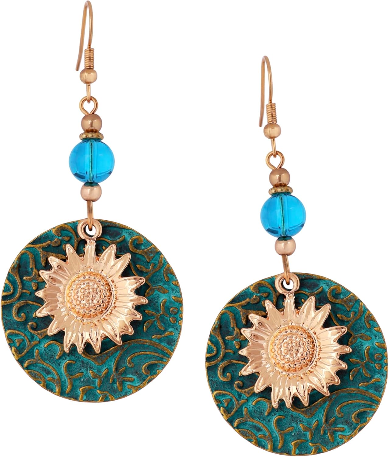 MINACHI Ethnic Vintage Bohemian Retro Antique Turquoise Color Theme Dangle Drop Earrings, Boho Jewelry Gift for Women