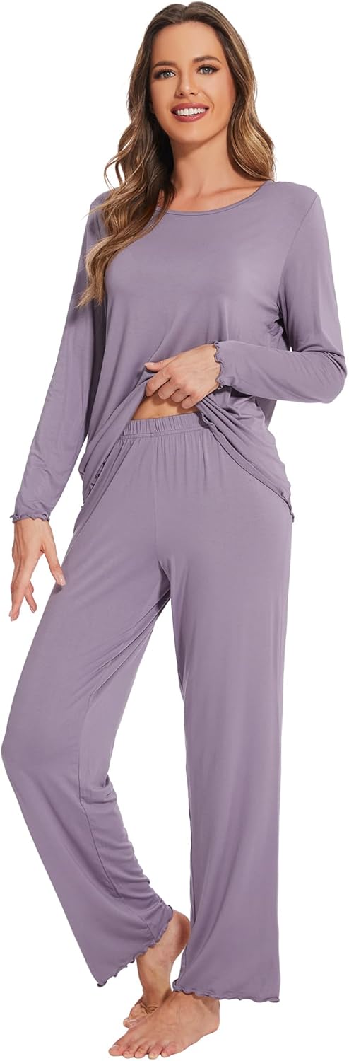 WiWi Viscose from Bamboo Pajama Sets for Women Super Soft Pjs Short Sleeve with Pants Cooling Sleepwear Loungewear S-XXL