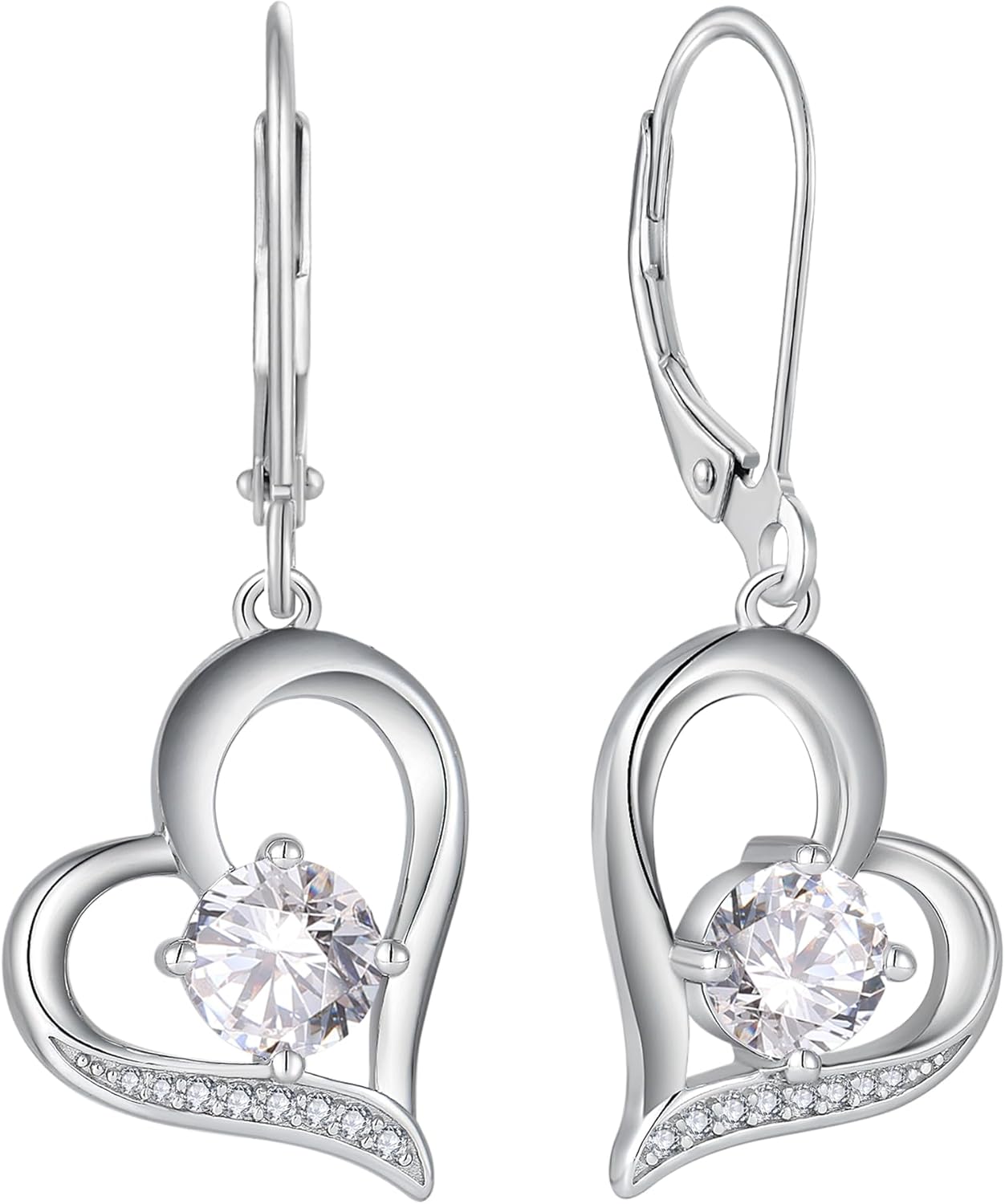 Women Heart Earrings 925 Sterling Silver Love Heart Dangle Drop Earrings Round Birthstone Jewelry