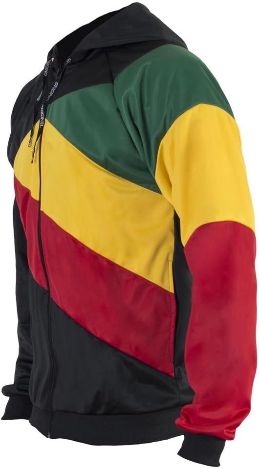 JL Sport Jamaican Reggae 3 Coloured Striped Hooded Capoeira Zip-up Jacket Tracksuit M Multicoloured
