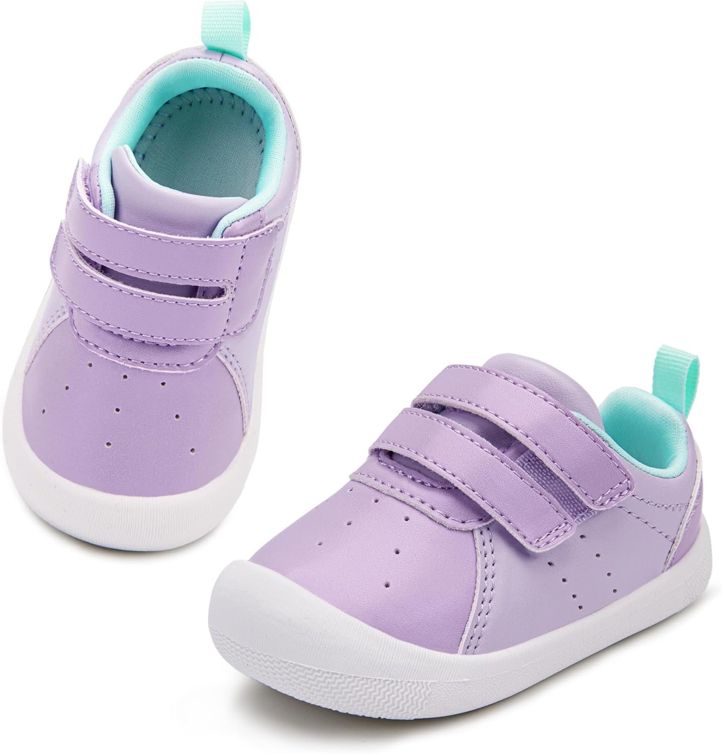Baby Shoes Boys Girls First Walking Shoes Wide Toe Box Barefoot Zero Drop Infant Shoes Lightweight Nonslip Soft First Walkers PU Leather Toddler Sneakers for 6-24 Months