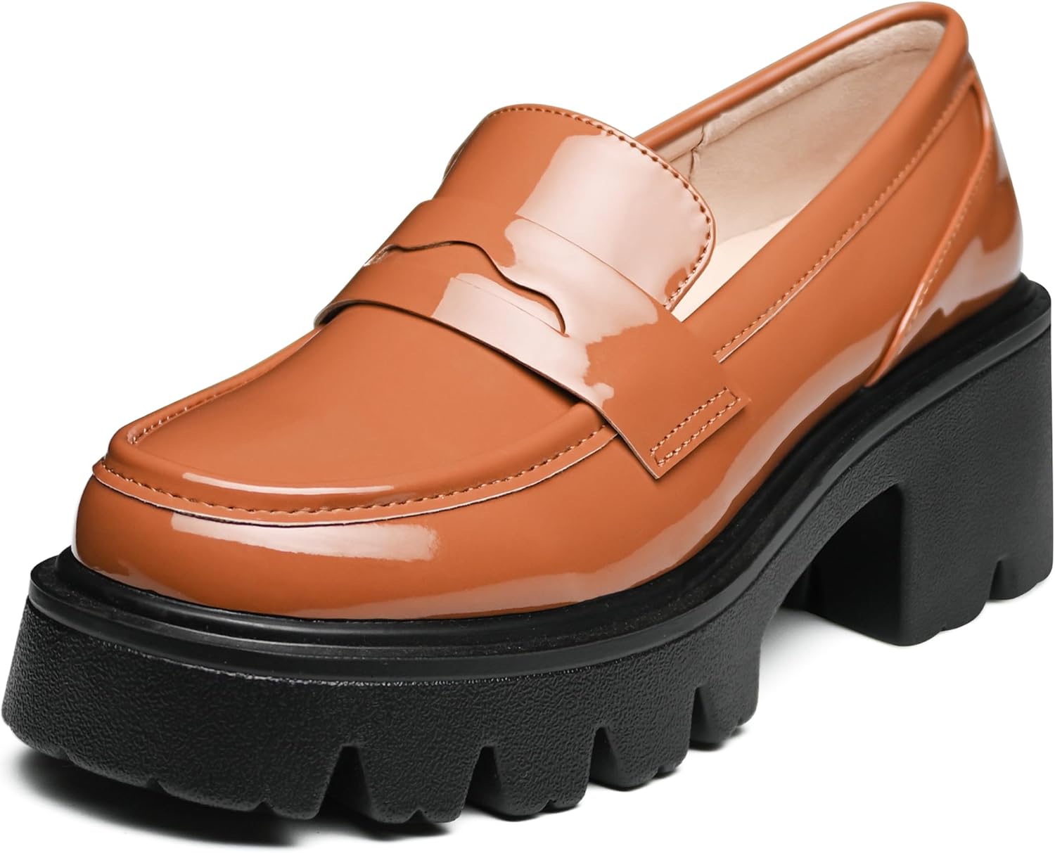 Platform Penny Loafers for Women - Comfortable Chunky Heel Classic Casual Shoes for Dressy and Office Wear