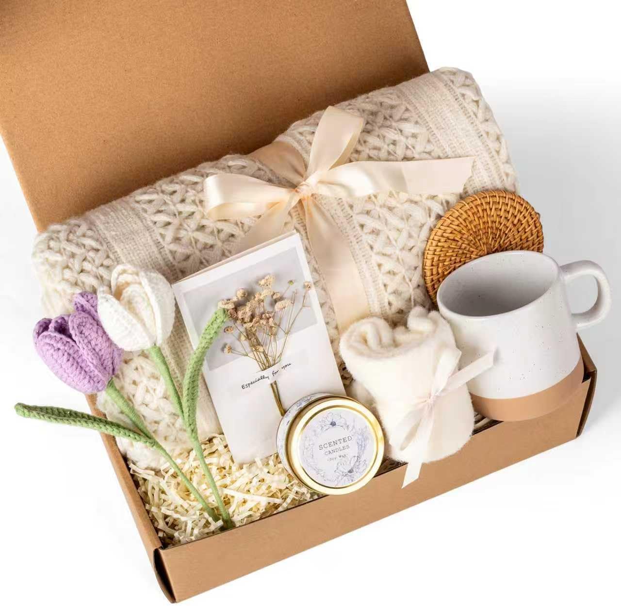- 【CARE PACKAGE FOR WOMEN】Relax, recharge, and restore balance with our lavender-scented candle,cozy blanket, fuzzy socks, hand crochet tulips. Ideal for wellness gifts, stress relief gifts, relaxation spa sets, self care gifts for women, and encouragement packages, it’s a comforting treat for birthdays, holidays, or recovery moments. Make her feel truly cherished with a thoughtful gesture designed to bring peace, calm, and healing energy.