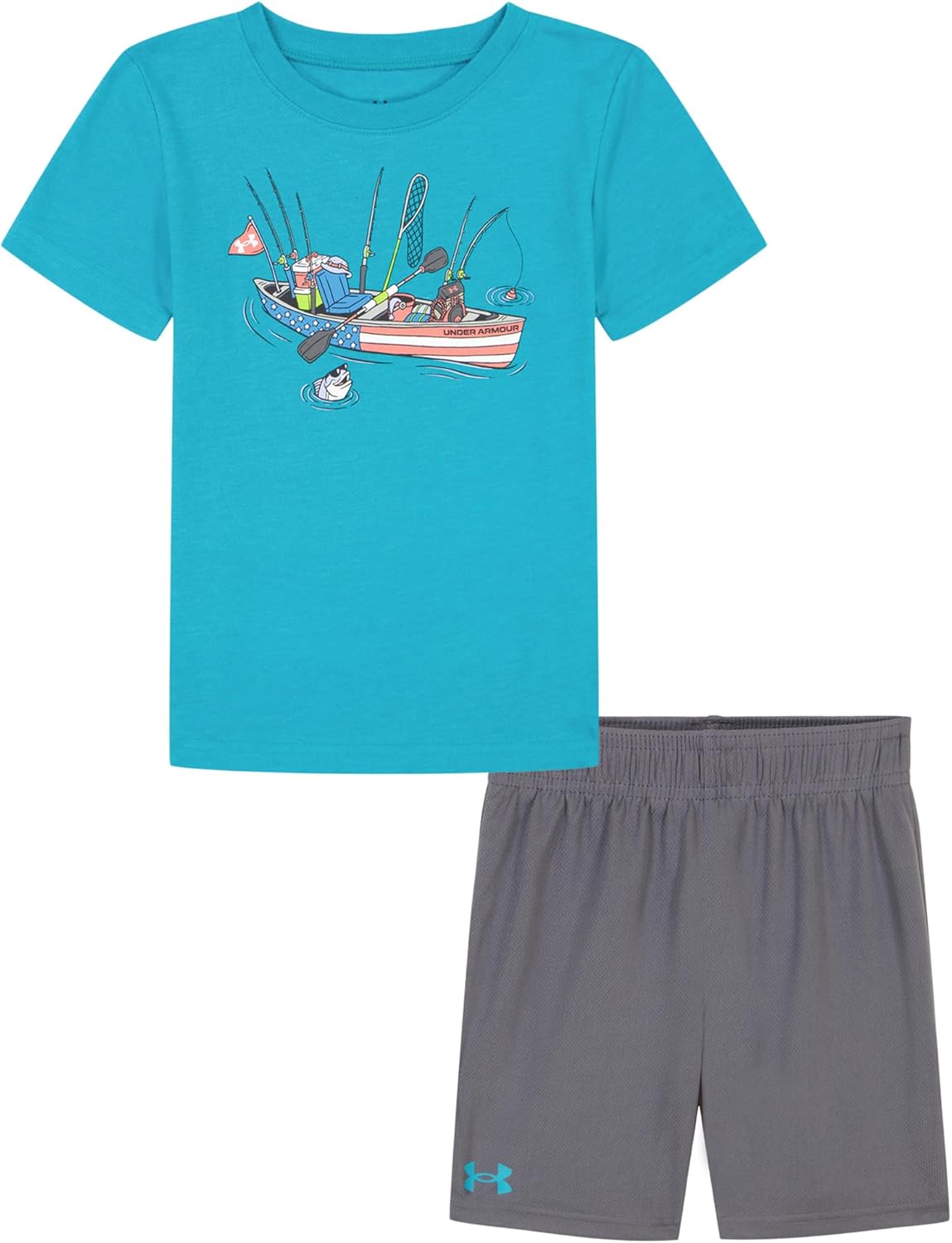 Under Armour Boys' 2-Piece Short Sleeve T-Shirt and Shorts Set, Outdoor Collection, Radial Turquoise, 4
