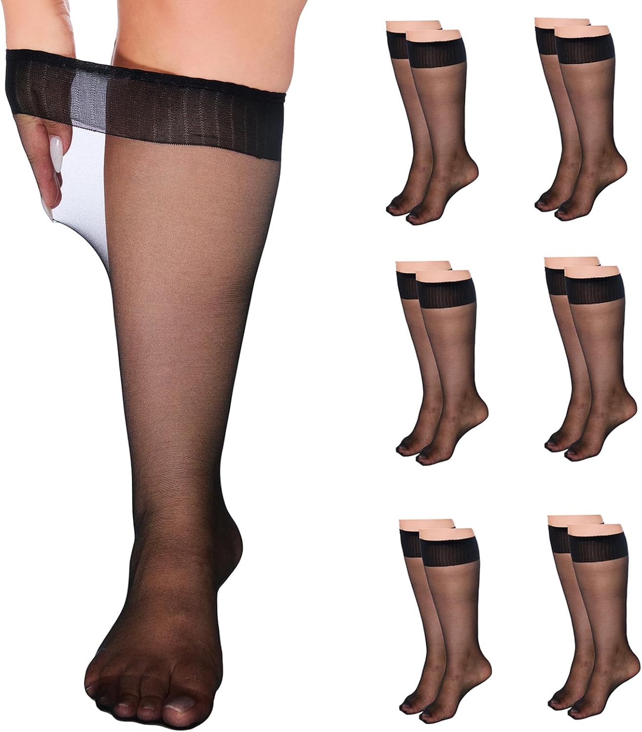 Plus Size Sheer Knee High Socks Nylon Super Wide Trouser Stockings 6 Pairs